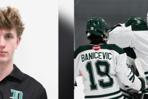 Logan Charby (2G, 1A) and Timofey Williams (38/41) helped Bishop’s College School get a 4-3 overtime victory over Stanstead College. Despite the shots being fairly even in the first, it was Bishop’s College that came away with a two-goal lead. Alexei Gachelin (1G, 1A) got Bishop’s College on the board with an unassisted marker and then he set up Logan Charby for a power play goal. Stanstead College responded with a power play goal of their own from Malik L’Italien midway through the second. A few minutes later, Charby scored his second goal of the contest on the man advantage to help Bishop’s College reclaim their two-goal lead. Stanstead College pressured hard in the third, outshooting Bishop’s College 16-5. That pressure led to a goal by Stanstead College’s Aaron Chipp (1G, 1A) to make it a 3-2 game with 7:15 left. With time winding down, Bishop’s College made a big mistake, taking a penalty with 38 seconds to play in regulation. Ryan Dwyer quickly took advantage for Stanstead College, evening the game up seven seconds after the penalty was taken. Stanstead College’s valiant comeback effort would fall short in overtime with Nathan Birch scoring 3:05 into the extra frame for Bishop’s College. Jack Carter (25/29) made 25 saves for Stanstead College in the overtime loss.